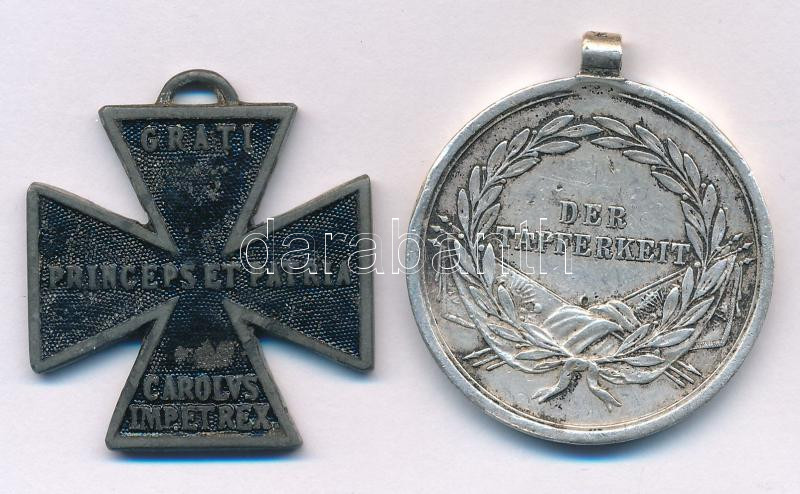 Beschreibung: 1914. "Ferenc József II. osztályú Ezüst Vitézségi Érem" jelzetlen Ag kitüntetés mellszalag nélkül. Szign.: Tautenhayn + 1916. "Károly-csapatkereszt" Zn kitüntetés (sérült) T:XF-F