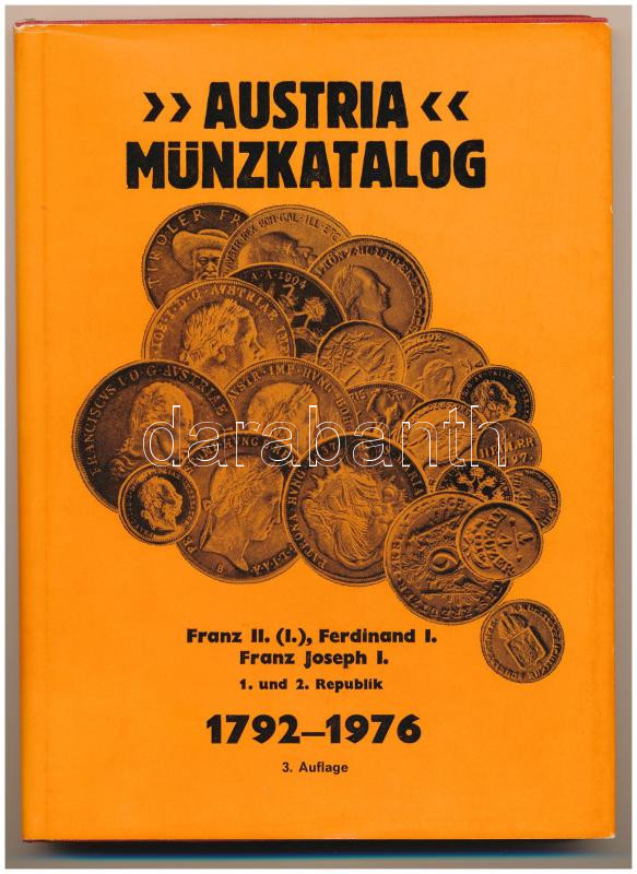 Austria Münzkatalog 1792-1976. Német nyelvű, 3. kiadás, jó állapotban https://www.darabanth.com/de/513-Auktion-Philatelie-Postkarten-Numismatik-Kunstwerke-Bucher-Schreibwaren-Schmuck/513.0/Numismatik/Numismatische-Literatur~711/Austria-Munzkatalog-1792-1976-Nemet-nyelvu-3-kiadas-jo-allapotban~II3466910