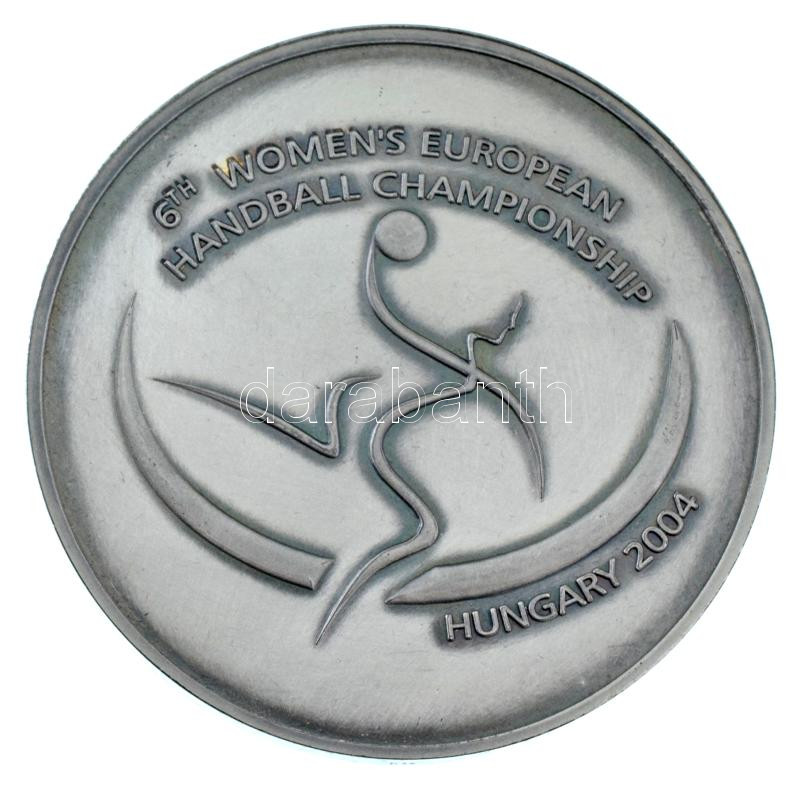 2004. "6. Női Kézilabda Európa Bajnokság" kétoldalas, ezüstpatinázott bronz emlékérem eredeti velúr tarisznyában (60mm) T:AU