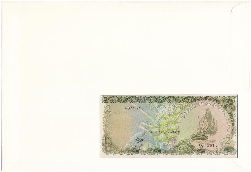 Maldives 1983. 2 Rufiyaa in envelope with stamp and cancellation C:UNC
