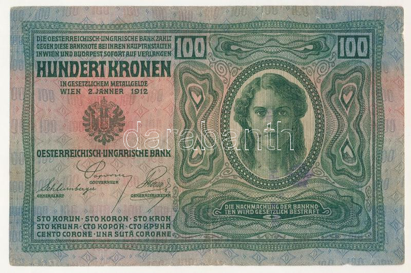 Beschreibung: 1912. 100K "1434 04891" hamis(?) felülbélyegzéssel T:VG kis beszakadások