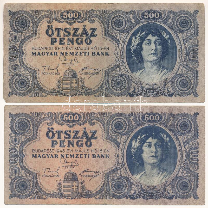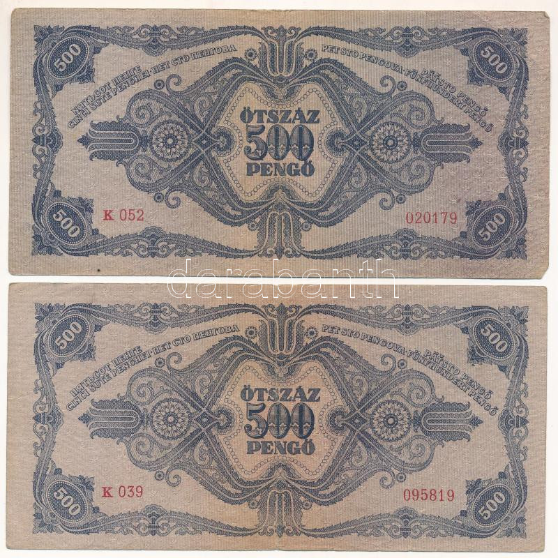 Beschreibung: 1945. 500P "K 052 020179" magyar "N" betű orosz "P" helyett + helyes szövegezésű támpéldány, a hibás nyomatnál alacsonyabb, "K 039" sorozatszámmal T:F,VG