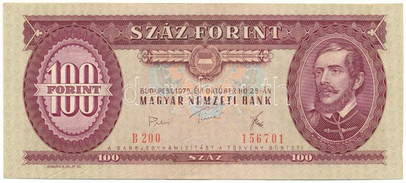 1975. 100Ft "B 200 156701" nyomdai papírráncokkal T:XF