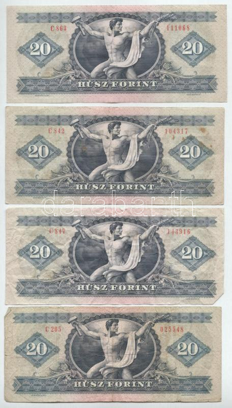 Beschreibung: 1975. 20Ft (4x) T:F, VG egyik szép papír, egyiken kézírás