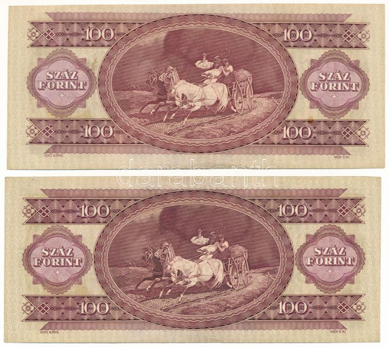 Beschreibung: 1980. 100Ft (2x) alacsony sorozatszámokkal "B 001" és "B 005" T:XF