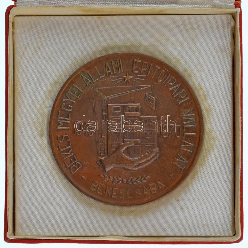 1970. "Békés Megyei Állami Építőipari Vállalat - Békéscsaba" egyoldalas, öntött bronz emlékérem eredeti tokban. Szign.: Simon F. (61mm) T:AU patina