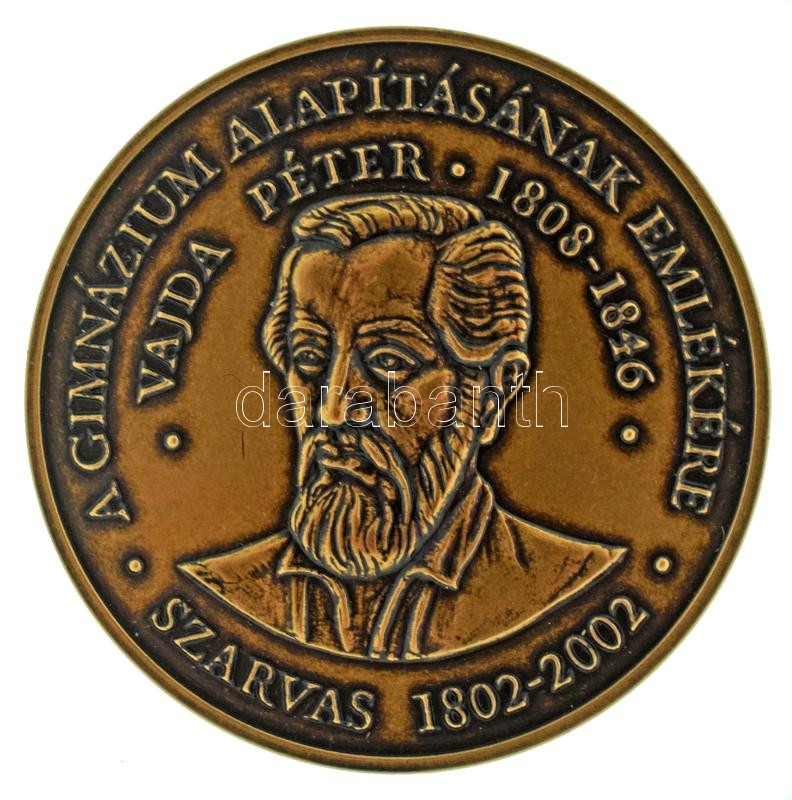 2002. "A GIMNÁZIUM ALAPÍTÁSÁNAK EMLÉKÉRE VAJDA PÉTER 1808-1846 SZARVAS 1802-2002" kétoldalas, vert, bronz emlékérem (42,5mm) T:AU
