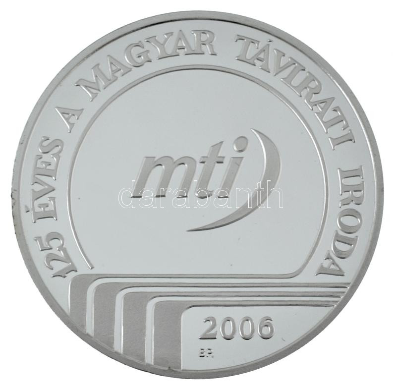 2006. "MTI - 125 éves a Magyar Távirati Iroda" kétoldalas, ezüstözött fém emlékérem kapszulában, dísztokban (42,5mm) T:PP