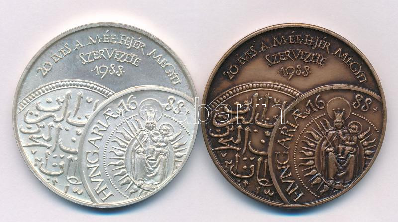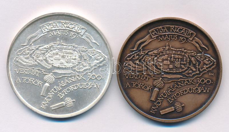 Beschreibung: Fritz Mihály (1947-) 1988. "20 éves a MÉE Fejér megyei Szervezete 1988 / Veretett a törökök kivonulásának 300. évfordulóján " kétoldalas Ag, peremén "SZG" jelzéssel és bronz emlékérem pár (35,40g/0.835/42,5mm) T:UNC,AU (eredetileg PP) patina