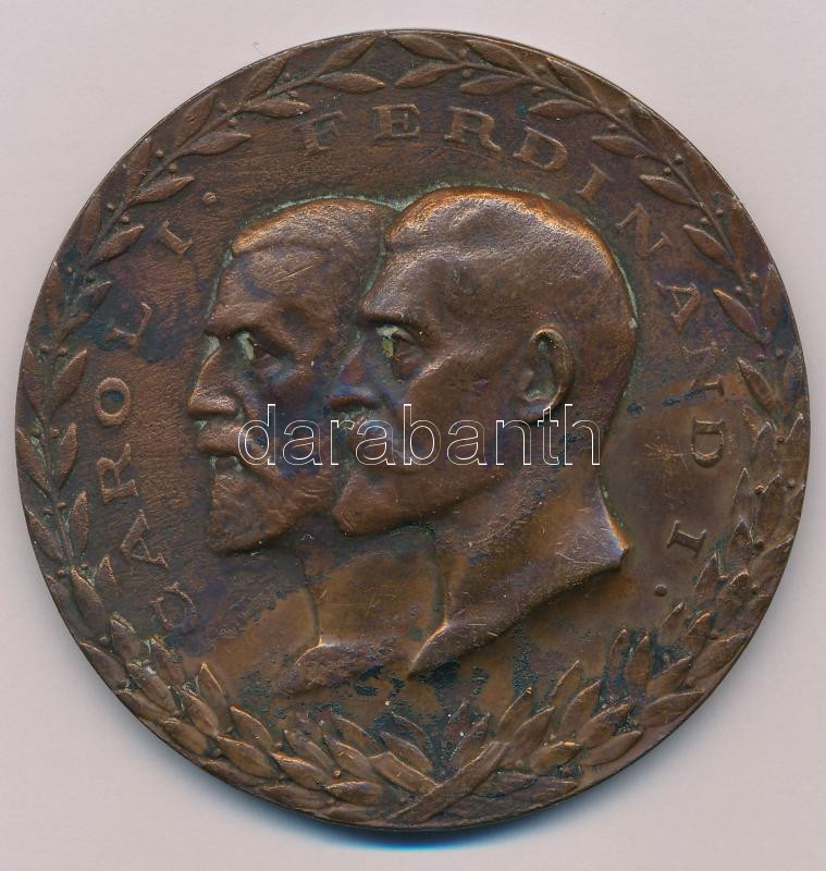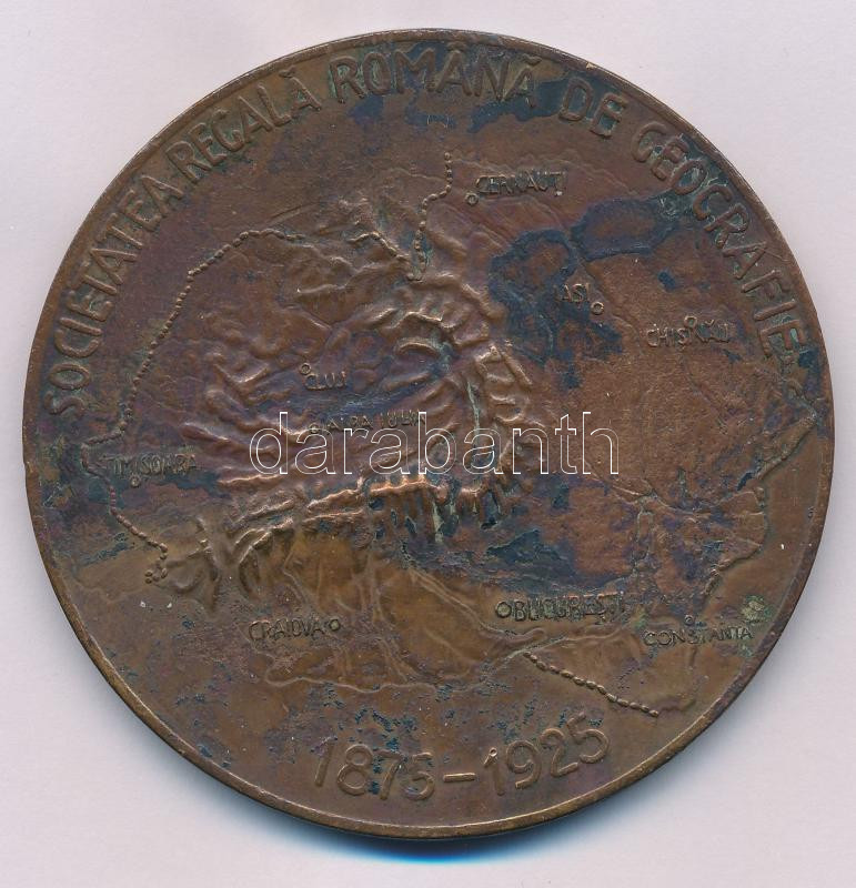 Románia 1925. "Societatea Regală Română de Geografie 1875-1925 / Carol I - Ferdinand I (A Román Királyi Földrajzi Társaság 50. évfordulója / I. Károly - I. Ferdinánd)" kétoldalas bronz emlékérem (70mm) T:XF,VF patina