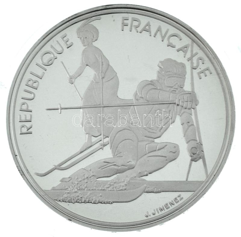 Franciaország 1990. 100Fr Ag "XVI. Téli Olimpia - Albertville 1992 - Szlalom síelés" tanúsítvánnyal, kapszulában, dísztokban T:PP