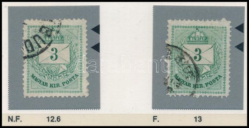 1874 2 db 3kr durva gyöngyjavításokkal, vésésjavítással (ex Orbán, Sebestyén aranyérmes kiállítási anyagból)