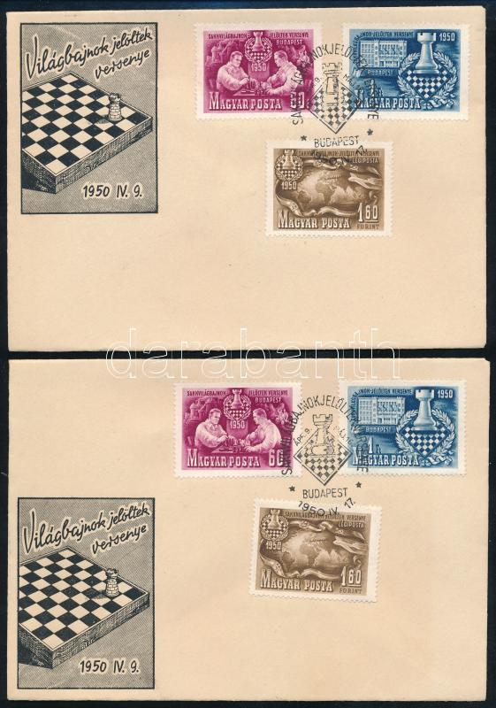 Beschreibung: 1950 Sakk (I.) sor 2 db FDC különböző elhelyezkedésű grafikával