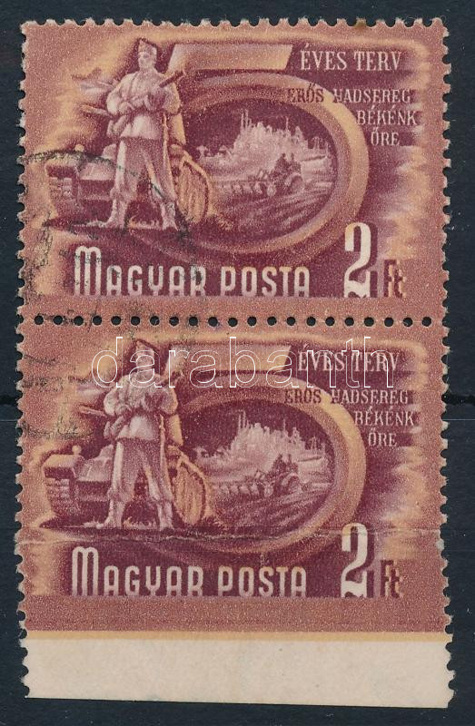 1951/53 Ötéves terv (II.) 2Ft függőleges pár, alul fogazatlan https://www.darabanth.com/de/513-Auktion-Philatelie-Postkarten-Numismatik-Kunstwerke-Bucher-Schreibwaren-Schmuck/513.0/Philatelie-und-Postgeschichte-Ungarn/Ausgaben-1946-1956~48/195153-Oteves-terv-II-2Ft-fuggoleges-par-alul-fogazatlan~II3466552
