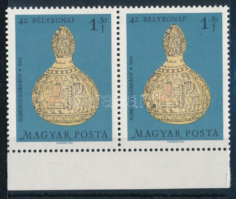 1969 Bélyegnap (42.) 1,50Ft ívszéli pár a jobb oldali bélyegen fekete ... https://www.darabanth.com/de/513-Auktion-Philatelie-Postkarten-Numismatik-Kunstwerke-Bucher-Schreibwaren-Schmuck/513.0/Philatelie-und-Postgeschichte-Ungarn/Ausgaben-1957-1969~49/1969-Belyegnap-42-1-50Ft-ivszeli-par-a-jobb-oldali-belyegen-fekete-pont-az-ertekszam-alat~II3465638