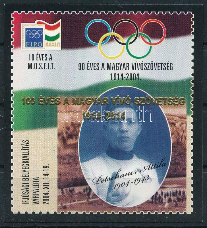 2014 100 éves a Magyar Vívószövetség emlékív. Felülnyomott, arany domb... https://www.darabanth.com/de/513-Auktion-Philatelie-Postkarten-Numismatik-Kunstwerke-Bucher-Schreibwaren-Schmuck/513.0/Philatelie-und-Postgeschichte-Ungarn/Gedenkbogen~56/2014-100-eves-a-Magyar-Vivoszovetseg-emlekiv-Felulnyomott-arany-dombornyomassal~II3466524