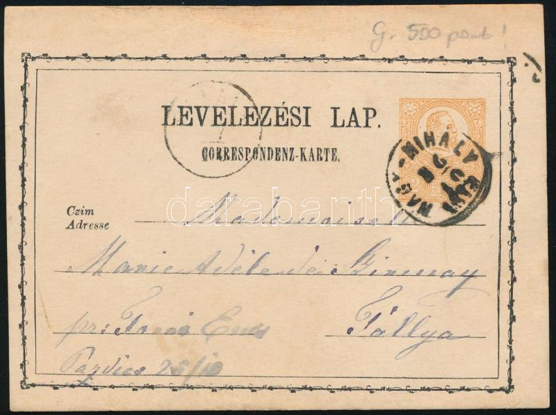 1873 2kr díjjegyes levelezőlap / PS-card "NAGY-MIHÁLY" - Tál... https://www.darabanth.com/de/513-Auktion-Philatelie-Postkarten-Numismatik-Kunstwerke-Bucher-Schreibwaren-Schmuck/513.0/Philatelie-und-Postgeschichte-Ungarn/Kupferstich~26/1873-2kr-dijjegyes-levelezolap-PS-card-NAGY-MIHALY-Tallya~II3338857