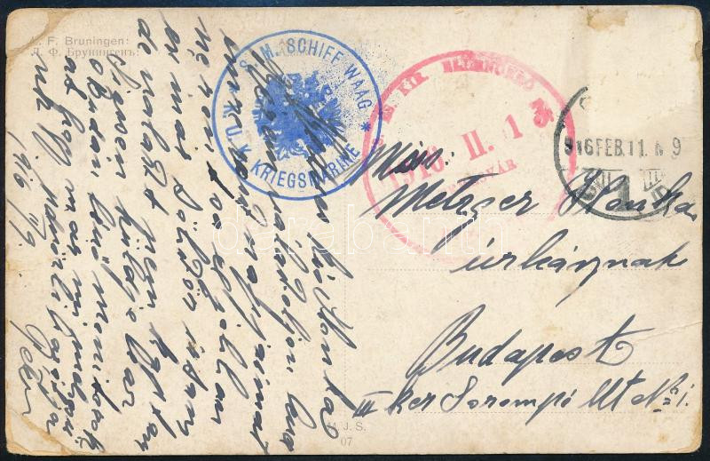 1916 Képeslap "S.M. SCHIFF WAAG / K.U.K. KRIEGSMARINE" Temesvári cenzúrával (bélyeghiány / missing stamp)