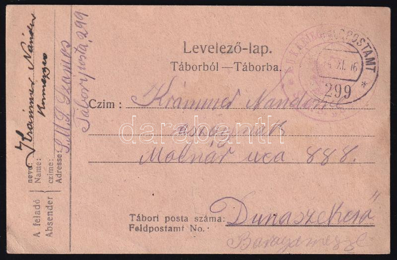 1916 Tábori posta levelezőlap a Szamos folyami hadihajóról "FP 299 b"