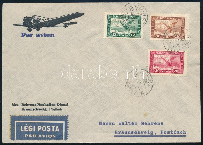 1932 Légi levél Németországba / Airmail cover to Germany https://www.darabanth.com/de/513-Auktion-Philatelie-Postkarten-Numismatik-Kunstwerke-Bucher-Schreibwaren-Schmuck/513.0/Philatelie-und-Postgeschichte-Ungarn/Pengo-Periode-1926-1944~45/1932-Legi-level-Nemetorszagba-Airmail-cover-to-Germany~II3472309