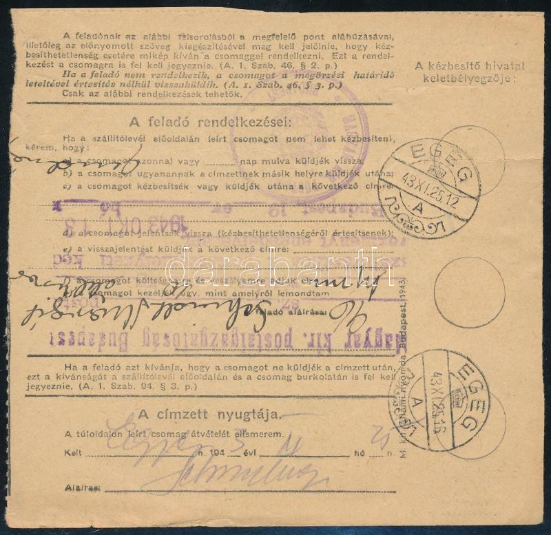 1943 Postaszemélyzeti díjkedvezménnyel feladott 10f díjú csomagszállít... https://www.darabanth.com/de/513-Auktion-Philatelie-Postkarten-Numismatik-Kunstwerke-Bucher-Schreibwaren-Schmuck/513.0/Philatelie-und-Postgeschichte-Ungarn/Pengo-Periode-1926-1944~45/1943-Postaszemelyzeti-dijkedvezmennyel-feladott-10f-diju-csomagszallito-level-Hadvezerek-8~II3469853