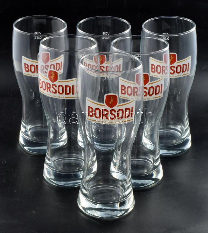 Beschreibung: 'Borsodi' üveg söröskorsó készlet, dobozban, 6 db, 0,5 l, m: 20 cm