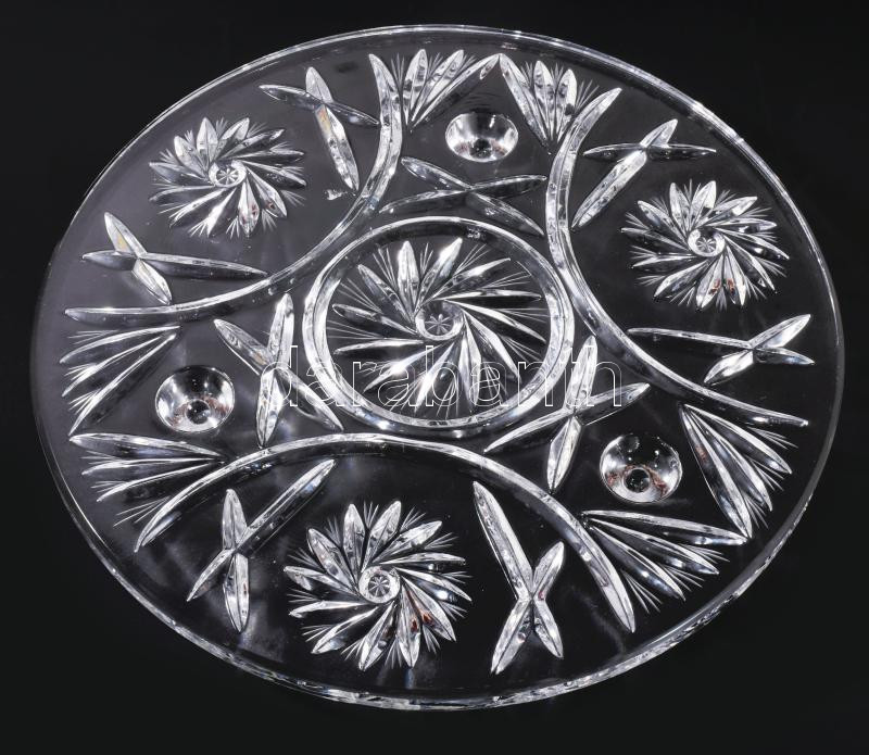 Beschreibung: Ólomkristály tortatálca, gazdag mintával díszítve, 3 kis lábon, hibátlan, d: 29 cm