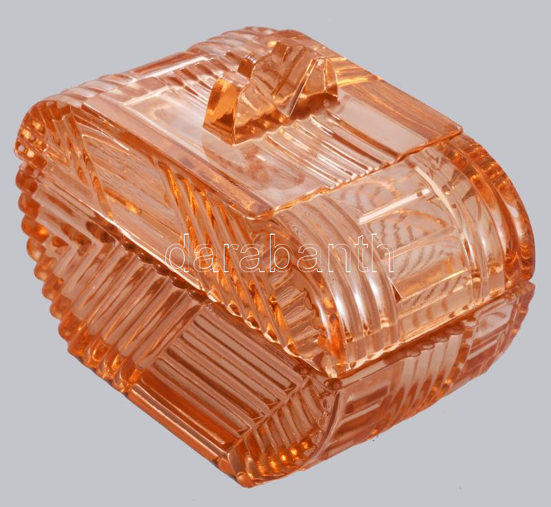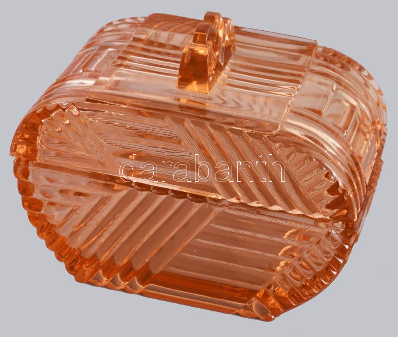 cca 1940 Art deco cseh bonbonier, anyagában színezett barackszínű, 12x... https://www.darabanth.com/de/513-Auktion-Philatelie-Postkarten-Numismatik-Kunstwerke-Bucher-Schreibwaren-Schmuck/513.0/Porzellan-Keramik-Glass/Glaser~79/cca-1940-Art-deco-cseh-bonbonier-anyagaban-szinezett-barackszinu-12x-9-cm~II3465175