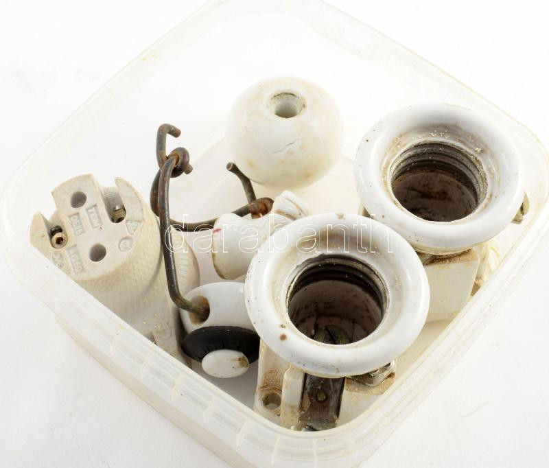 Beschreibung: 7 darab porcelán aljzat, kemenceajtó gomb, üveglezáró.