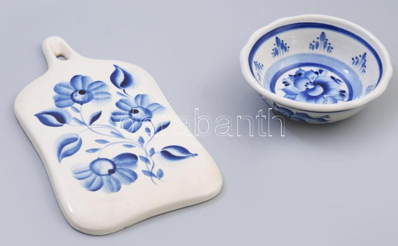 Beschreibung: Gzhel sajtdeszka és szószos edény, jelzett, h: 21 cm