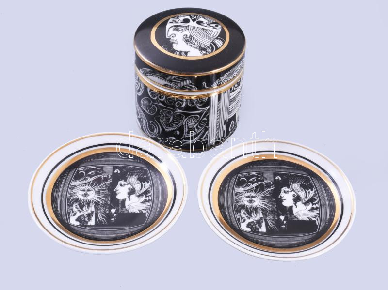 Hollóházi Szász Endre által tervezett porcelán tégely és két darab tál... https://www.darabanth.com/de/513-Auktion-Philatelie-Postkarten-Numismatik-Kunstwerke-Bucher-Schreibwaren-Schmuck/513.0/Porzellan-Keramik-Glass/Porzellan~78/Hollohazi-Szasz-Endre-altal-tervezett-porcelan-tegely-es-ket-darab-talka-Matricas-jelzet~II3470111