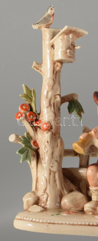 Beschreibung: Régi német madárnak fuvolázó kisfiú figura, sorszámozott, sérült, m: 19,5 cm