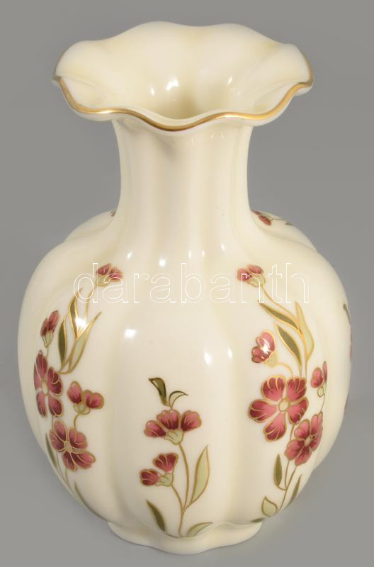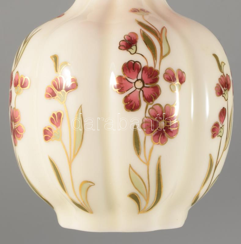 Zsolnay hólyagos alakú virágmintás váza, jelzett, hibátlan, m: 15 cm https://www.darabanth.com/de/513-Auktion-Philatelie-Postkarten-Numismatik-Kunstwerke-Bucher-Schreibwaren-Schmuck/513.0/Porzellan-Keramik-Glass/Porzellan~78/Zsolnay-holyagos-alaku-viragmintas-vaza-jelzett-hibatlan-m-15-cm~II3465881