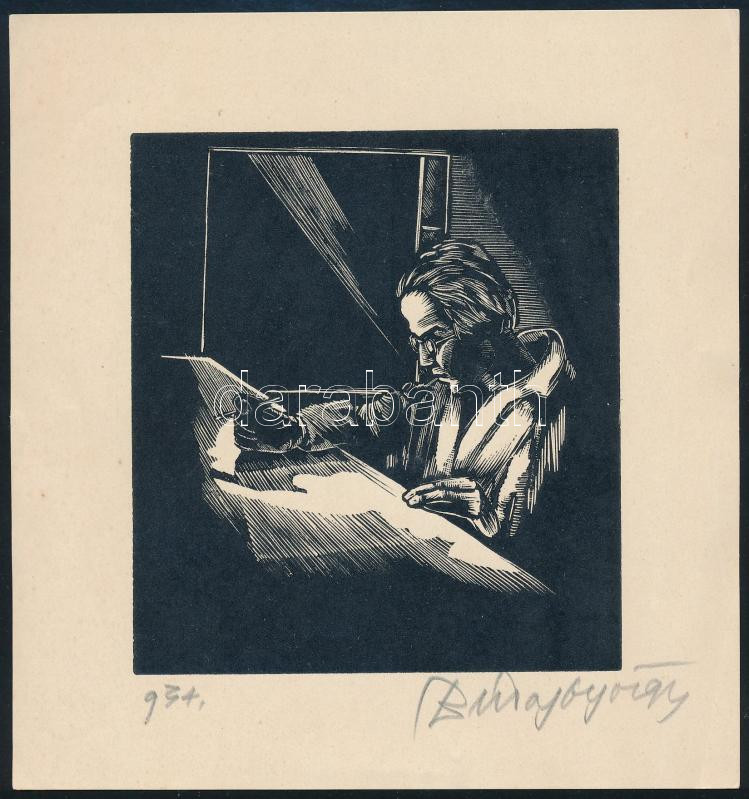 Buday György (1907-1990): Pipázó az íróasztalnál, 1934. Fametszet, pap... https://www.darabanth.com/de/513-Gemalde-Plakat-ex-libris-Auktion/514.0/Gemalde-und-Grafiken/Ex-libris-Kleingrafik~2/Buday-Gyorgy-1907-1990-Pipazo-az-iroasztalnal-1934-Fametszet-papir-jelzett-HatoldalC3~II3459873