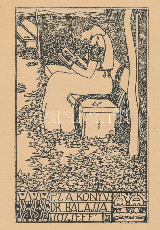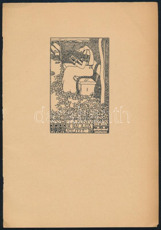 Kozma Lajos (1884-1948): Ez a könyv Dr Balassa Józsefé (szecessziós ex libris). Klisé, papír, jelzett a kliséb, paszpartuban 9,5×6 cm