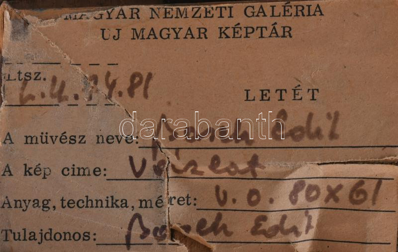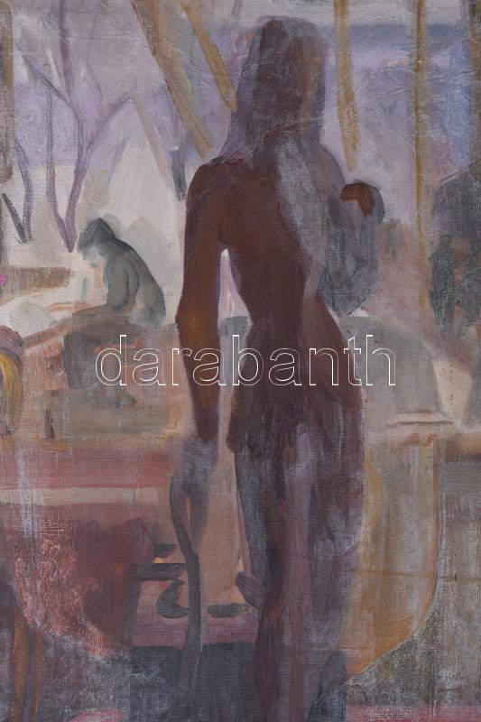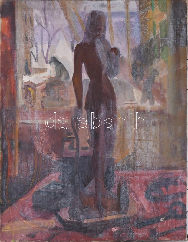 Basch Edit (1895-1980): Álló női akt (Vázlat). Olaj, vászon, jelzés nélkül. Hátoldalán Magyar Nemzeti Galéria - Új Magyar Képtár raglapjával. Apró sérüléssel. 80x60 cm