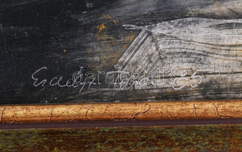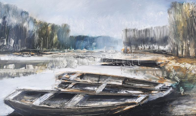 Beschreibung: Erdélyi Tibor (1961-): Holt Tisza. Olaj, farost. Jelzett. Hátoldalán autográf felirattal. Fakeretben, 29,5×59,5 cm
