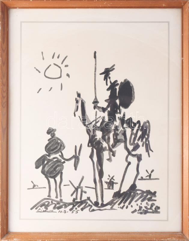 Pablo Picasso (1881-1973): Don Quijote. Nyomat, papír, jelzett a nyoma... https://www.darabanth.com/de/513-Gemalde-Plakat-ex-libris-Auktion/514.0/Gemalde-und-Grafiken/Gemalde-und-Grafiken~4/Pablo-Picasso-1881-1973-Don-Quijote-Nyomat-papir-jelzett-a-nyomaton-Uvegezett-fakeretben-5~II3474203