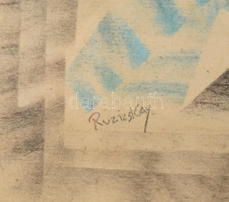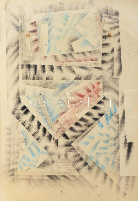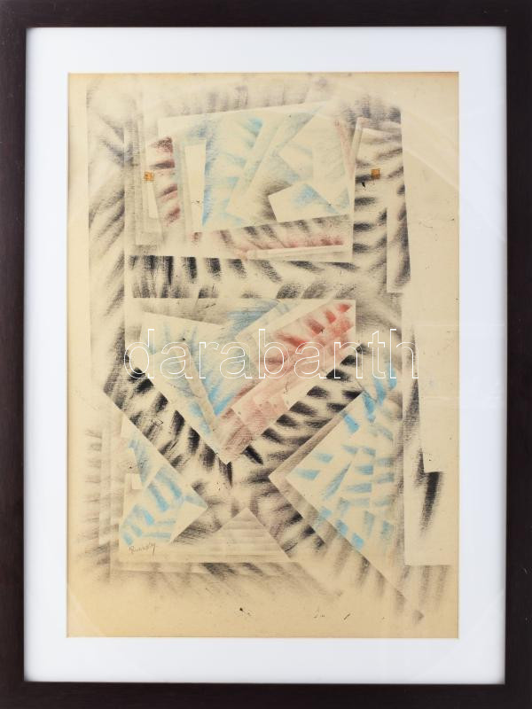 Ruzicskay György (1896-1993): Absztrakt kompozíció. Vegyes technika, papír, jelzett. Üvegezett fakeretben, 58x40 cm / mixed technique on paper, signed, framed