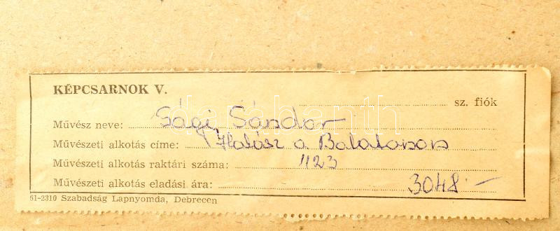 Sági Sándor (1917-2007): Színes vitorlások (Balaton). Olaj, vászon, je... https://www.darabanth.com/de/513-Gemalde-Plakat-ex-libris-Auktion/514.0/Gemalde-und-Grafiken/Gemalde-und-Grafiken~4/Sagi-Sandor-1917-2007-Szines-vitorlasok-Balaton-Olaj-vaszon-jelzett-Hatoldalan-a-K~II3424211