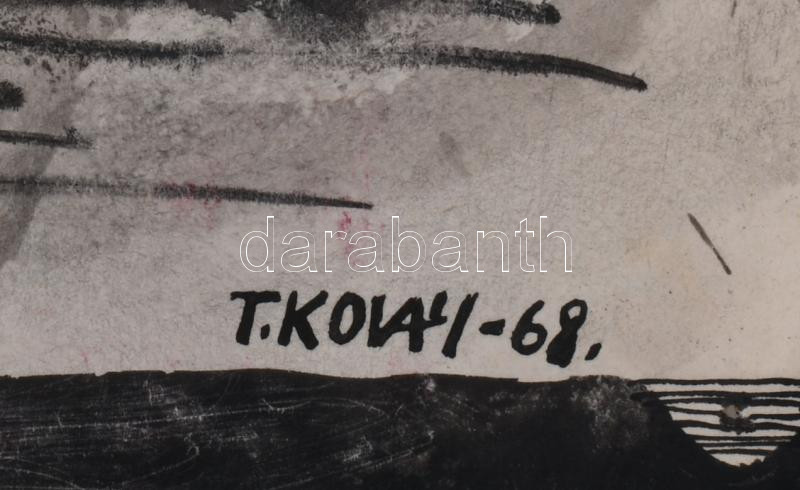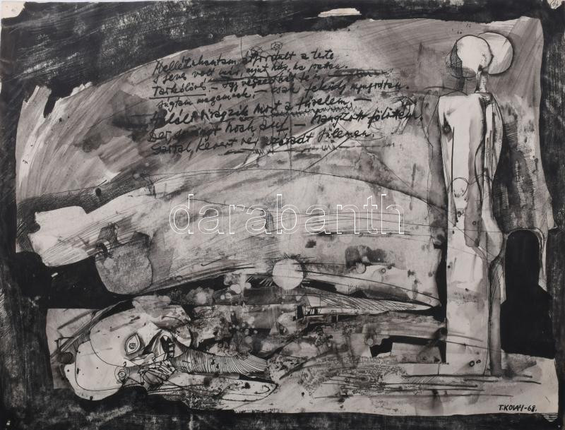 Tardi Kovács Sándor (1938-2013): Illusztráció Radnóti Miklós Razglednicák c. verséhez, 1968. Tus, papír, jelzett, lap sarkaiban apró lyukakkal, 35x45 cm