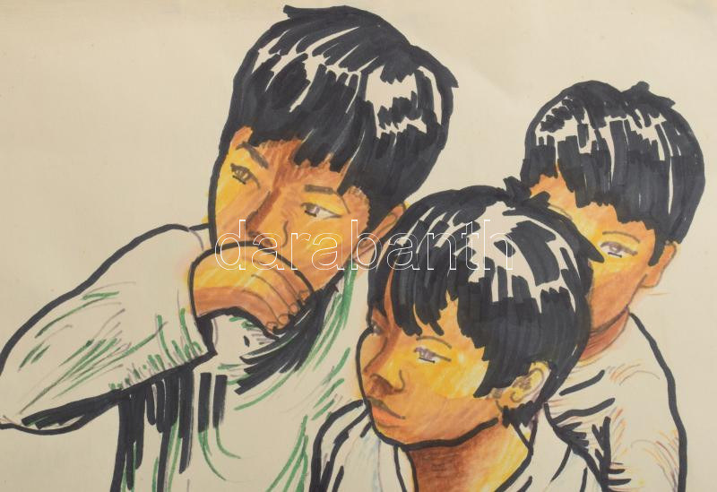 Tavaszy Noémi (1927-2018): Vietnámi gyerekek 1989. Filc, papír. Jelzet... https://www.darabanth.com/de/513-Gemalde-Plakat-ex-libris-Auktion/514.0/Gemalde-und-Grafiken/Gemalde-und-Grafiken~4/Tavaszy-Noemi-1927-2018-Vietnami-gyerekek-1989-Filc-papir-Jelzett-38x25-cm~II3471471