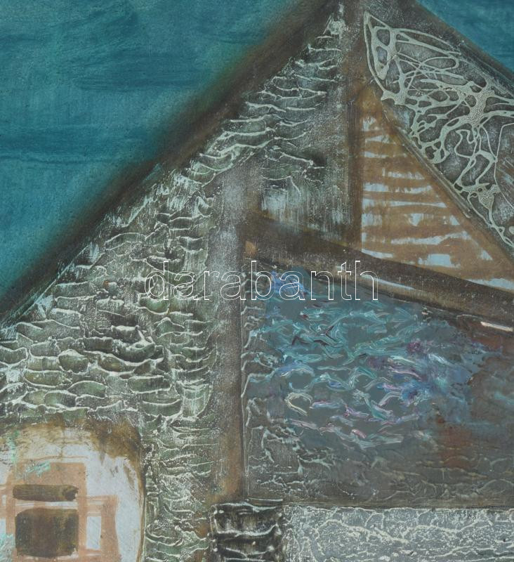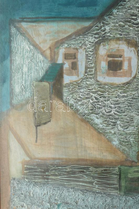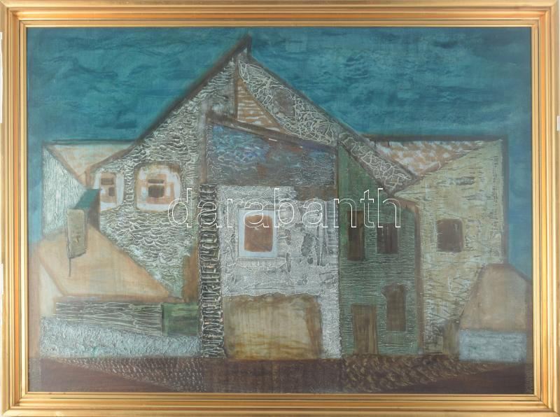 Beschreibung: Tilless Béla (1932?2018): Házak a városfalnál. Olaj, farost, jelzett hátodalán autográf felirattal. 60x80 cm Keretben