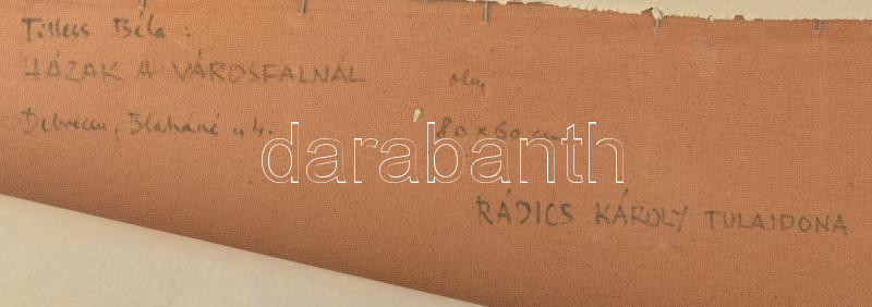 Tilless Béla (1932?2018): Házak a városfalnál. Olaj, farost, jelzett h... https://www.darabanth.com/de/513-Gemalde-Plakat-ex-libris-Auktion/514.0/Gemalde-und-Grafiken/Gemalde-und-Grafiken~4/Tilless-Bela-19322018-Hazak-a-varosfalnal-Olaj-farost-jelzett-hatodalan-autograf-felir~II3470224