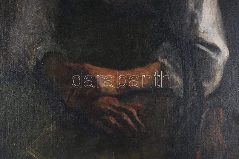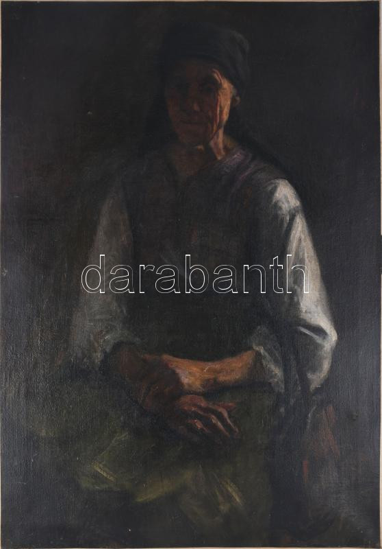 Jelzés nélkül (Koszta József?): Női portré. Olaj, vászon. Hátoldalán utólagosan felragasztott "Koszta Józsaf művei. 75. Ülő nő. Gróf Andrássy Gyula tulajdona." feliratú címkével. Javított. Apró felületi sérüléssel. 100x70 cm.