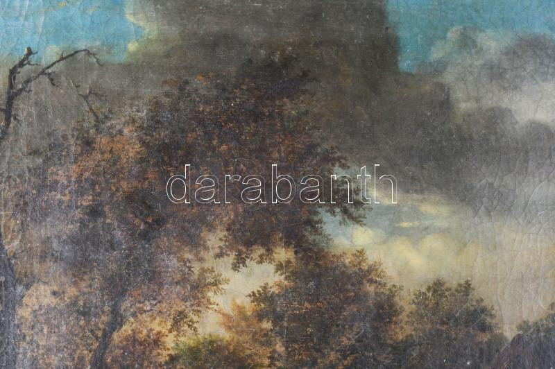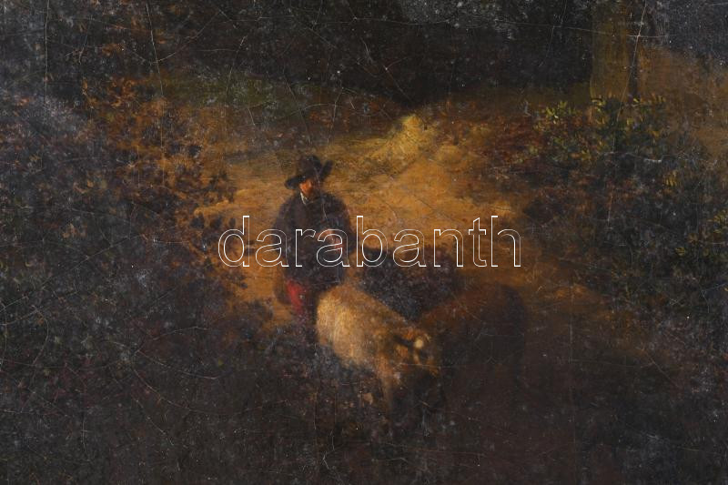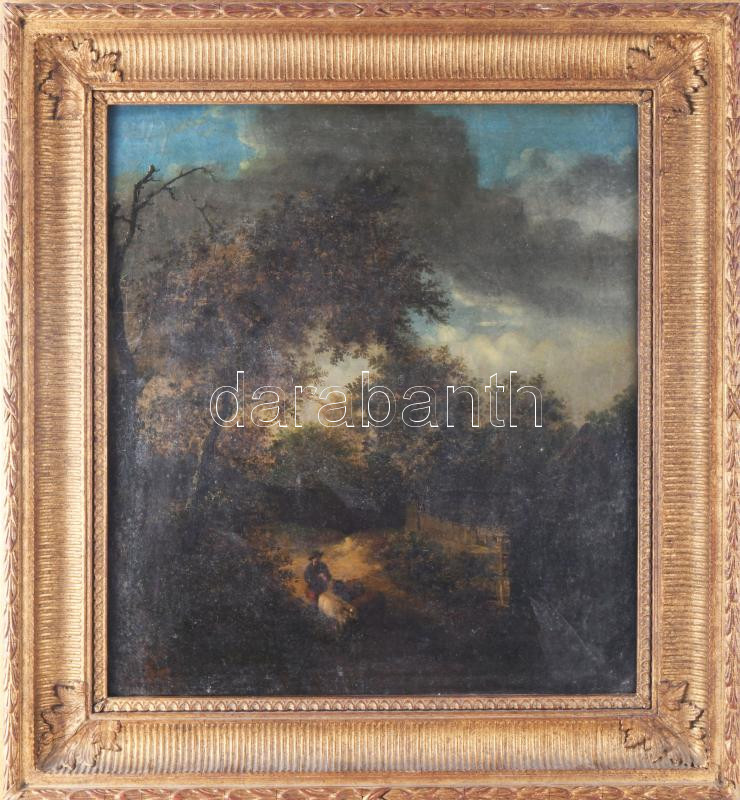 Jelzés nélkül, XIX. sz. eleje: Juhász nyájával. Olaj, vászon. Dekoratív fakeretben, 46×42 cm