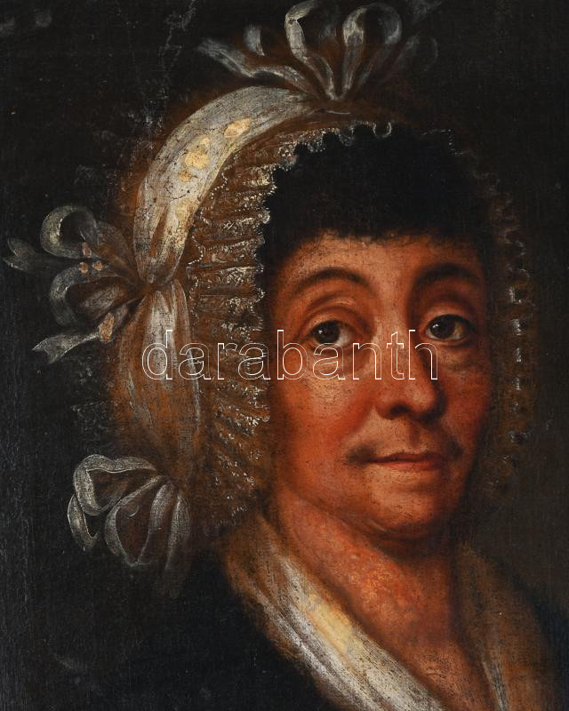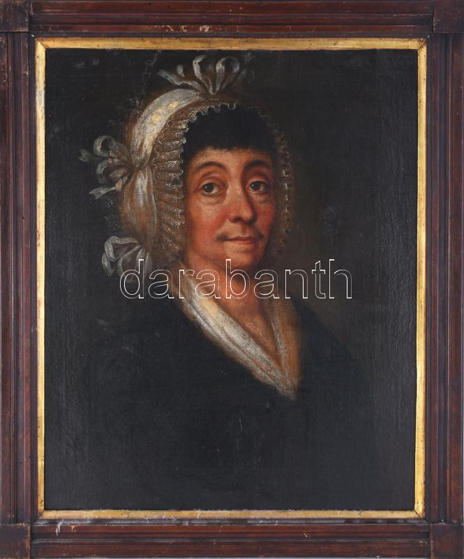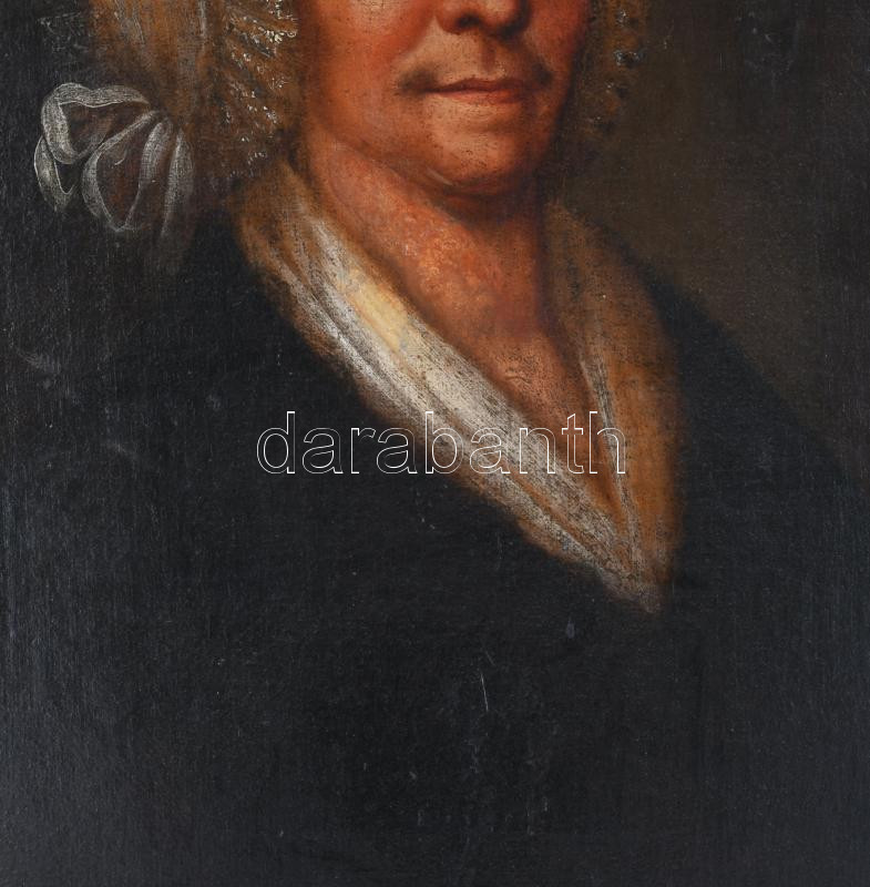 Jelzés nélkül, XVIII. sz. festő: Női portré, olaj, vászon, restaurált. Fakeretben. 57×46 cm