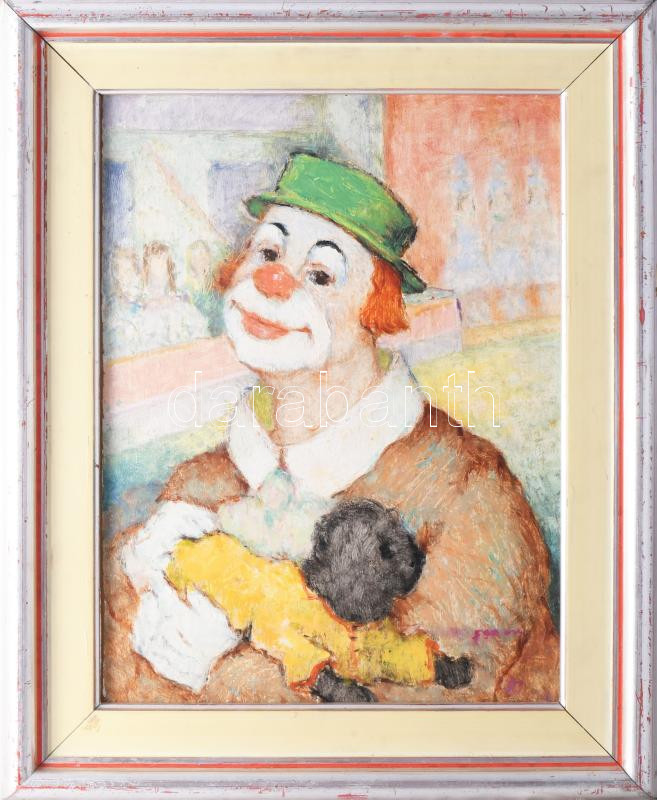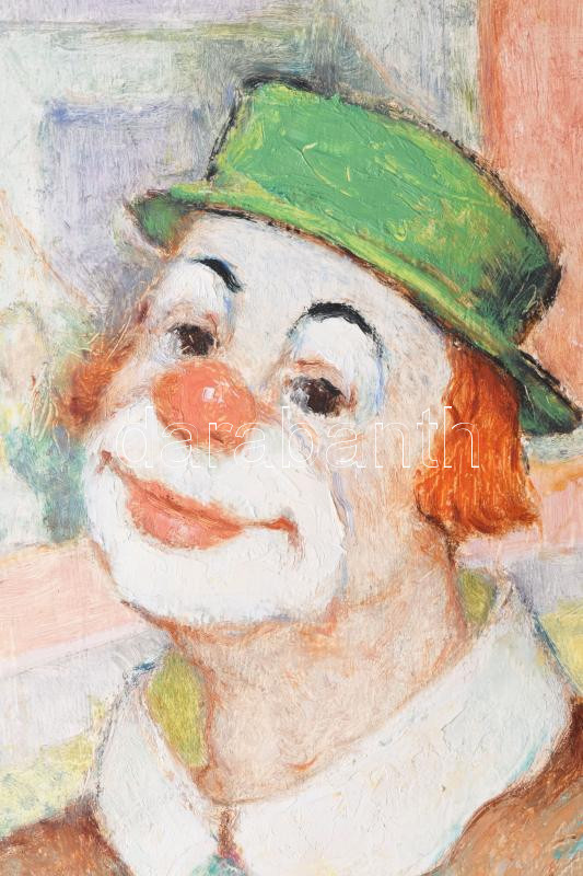 Jelzés nélkül, XX. sz. második fele (Szarka László?): Bohóc. Olaj, farost. Dekoratív fakeretben. 41x31 cm