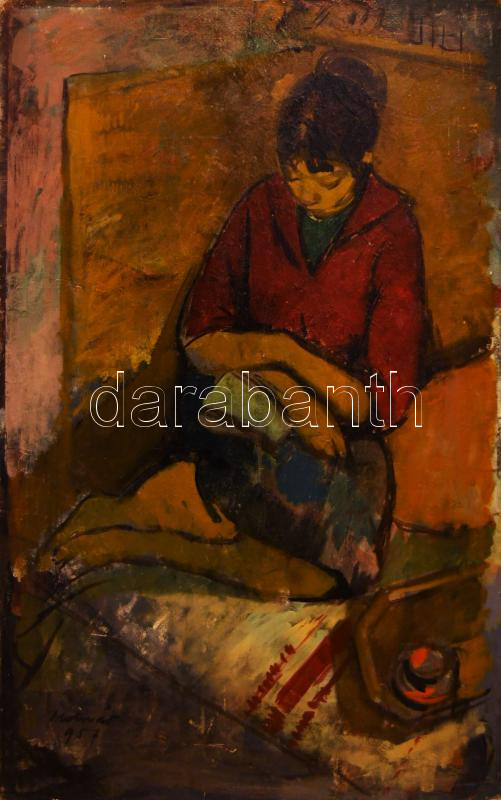 Molnár jelzéssel: Pihenő lány, 1957. Olaj, farost. Proveniencia: Saphier-gyűjtemény. Apró felületi sérülésekkel. 122x77 cm. KIZÁRÓLAG SZEMÉLYES ÁTVÉTEL, NEM POSTÁZZUK! / ONLY PERSONAL COLLECTION AT OUR OFFICE!