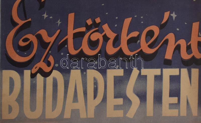 Ez történt Budapesten, 1944. Moziplakát (filmplakát, rácsplakát). Muráti Lili, Hajmássy Miklós, Rajnay Gábor, Ladomerszky Margit, Kiss Manyi, Makláry Zoltán szereplésével. Rendező: Hamza D. Ákos. Litográfia, papír. Bódis jelzéssel a litográfián Kellner Márkus, Bp. M.F.I. Film. Lapszéli szakadásokkal. 84×29 cm. / Vintage Hungarian movie poster, with tears, lithograph on paper.